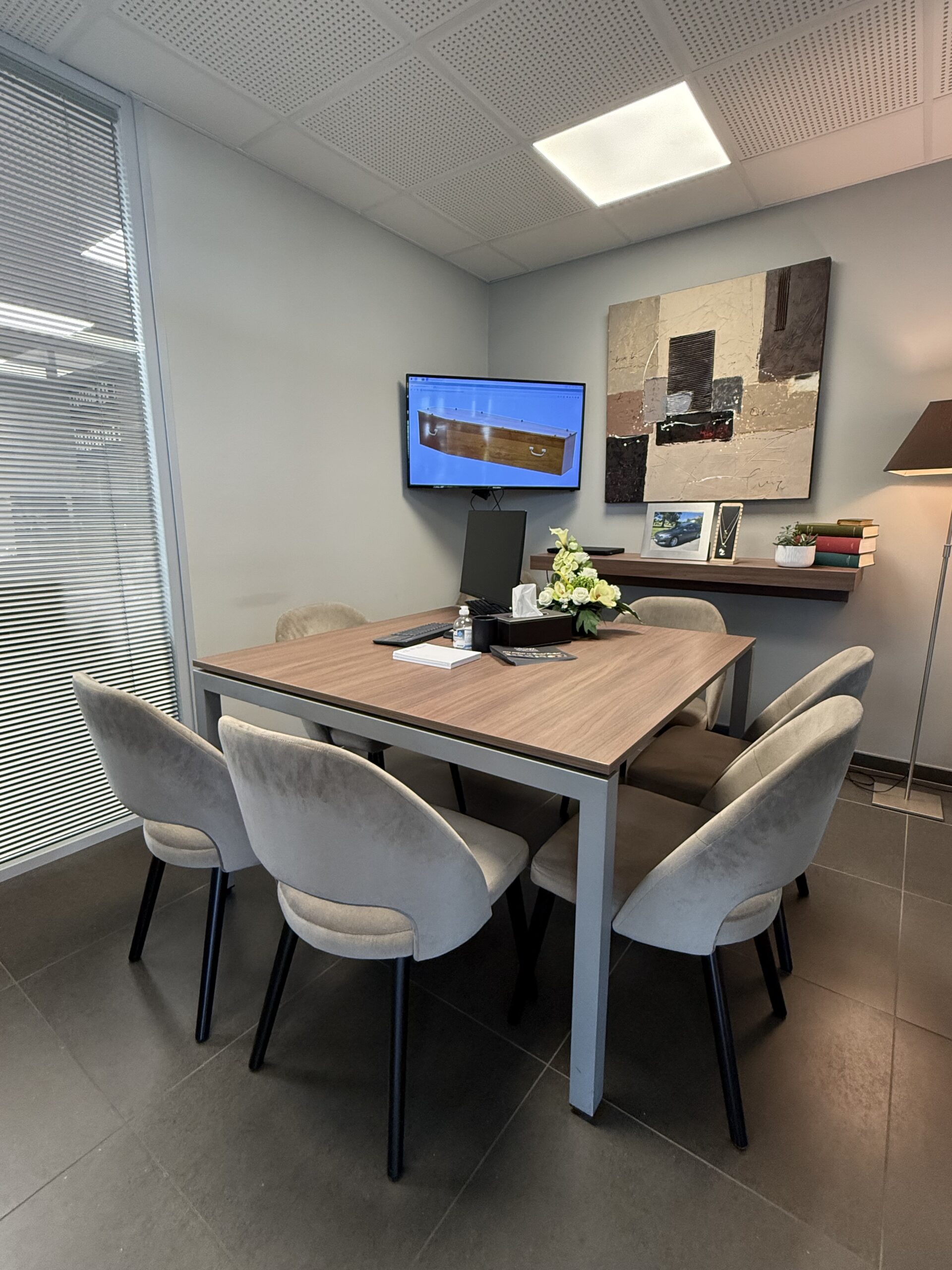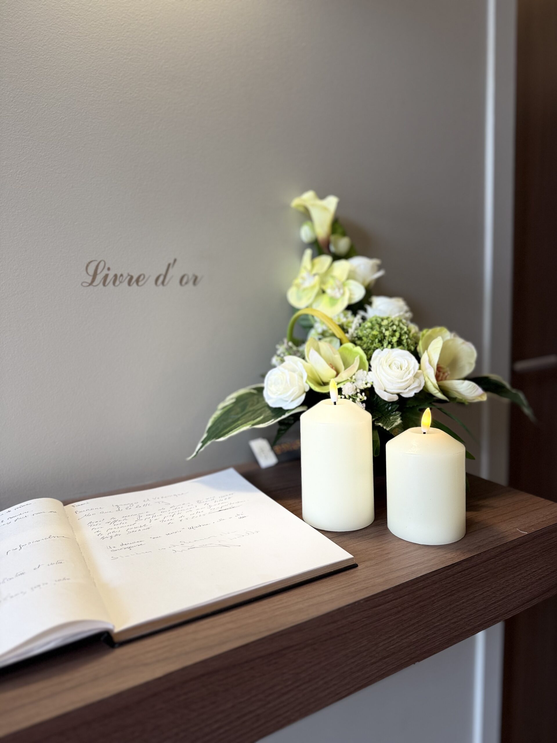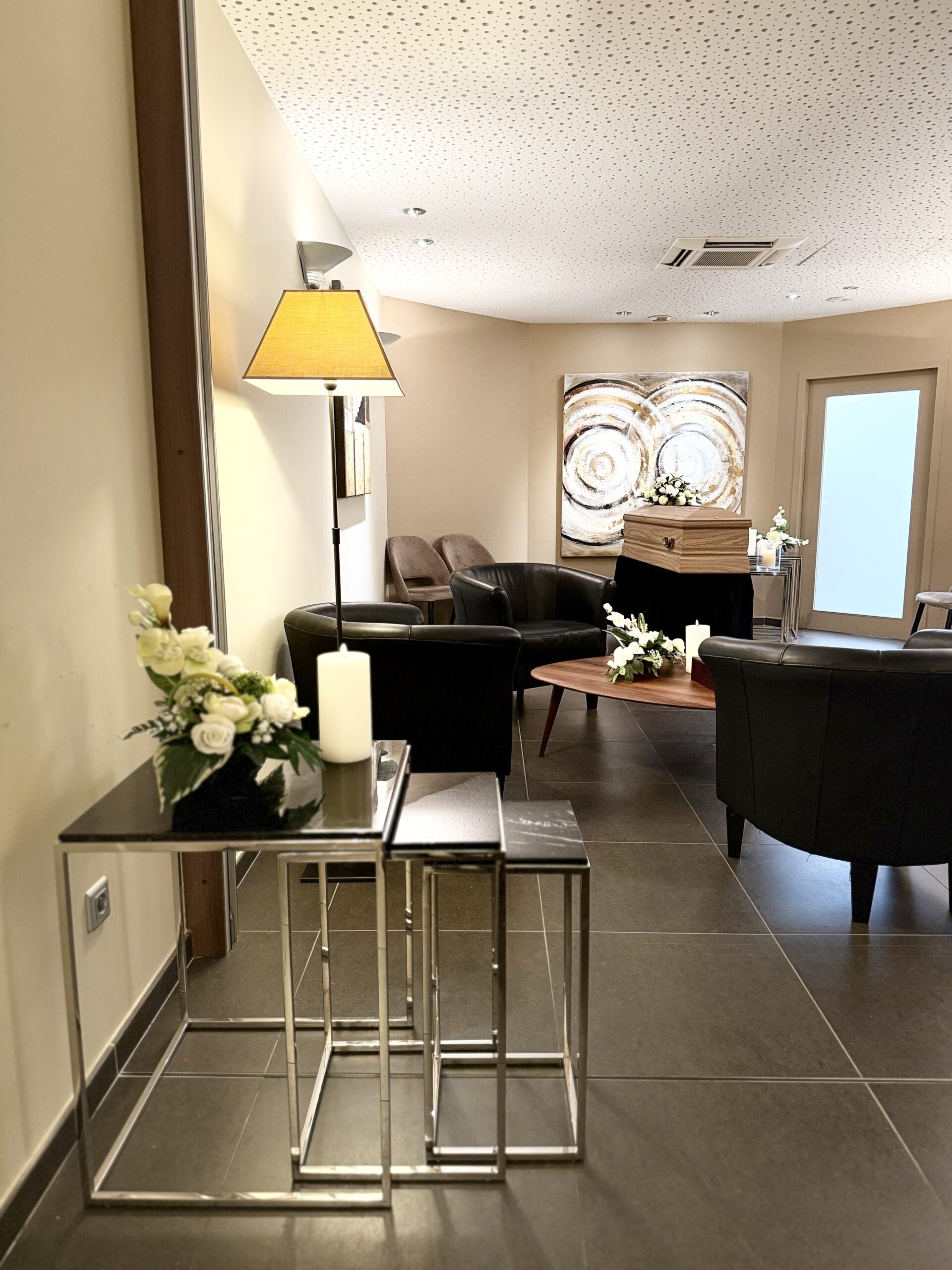 Afin de vous offrir un accueil à la hauteur de vos attentes, nous avons récemment apporté un soin particulier à la décoration de nos locaux. Vous disposez d’un cadre élégant et apaisant, propice à l’hommage et au recueillement auprès du défunt. Vous pouvez apporter des objets ou décors mobiles afin de personnaliser le salon à l’image de ce qu’appréciait votre proche.