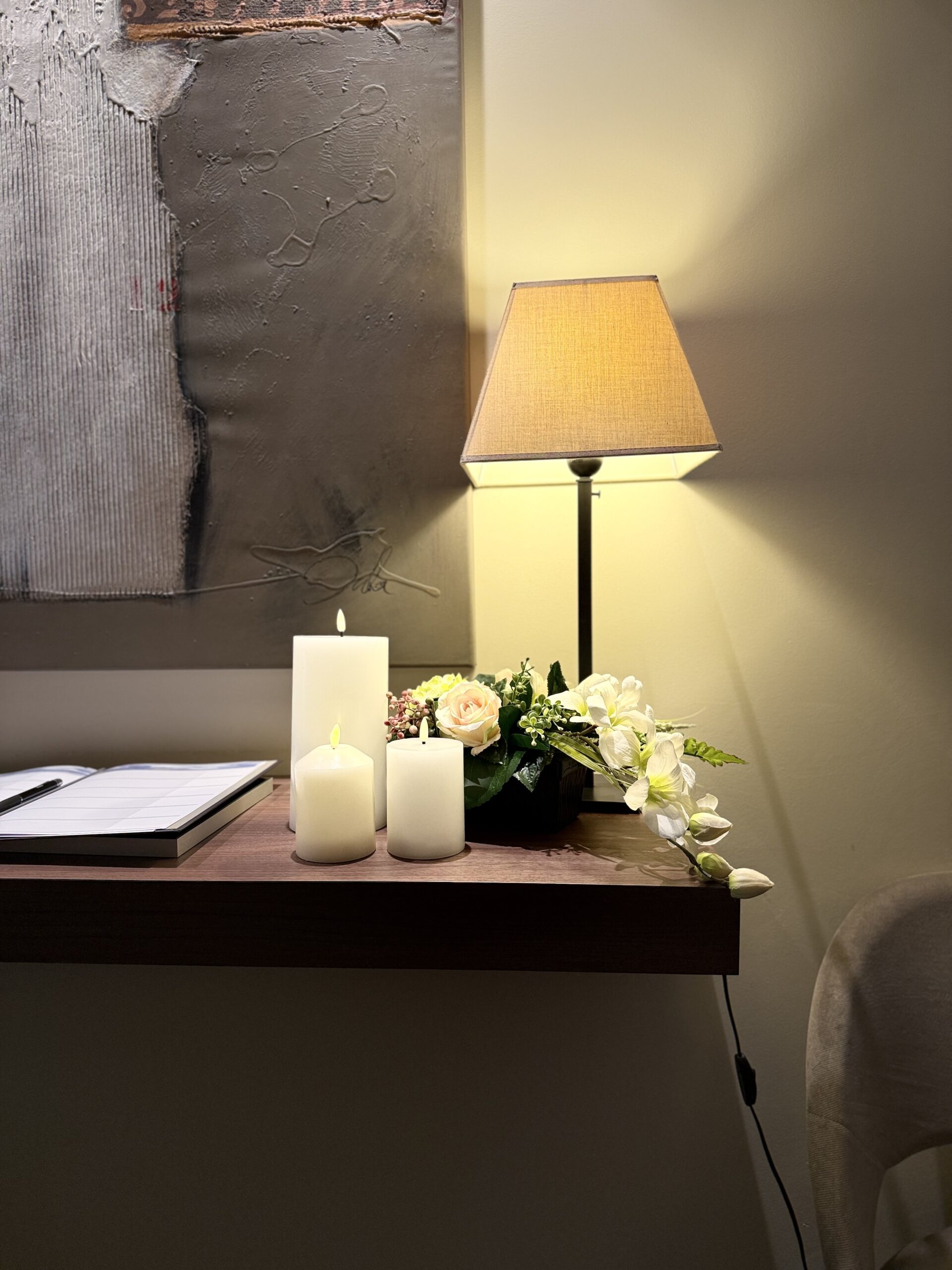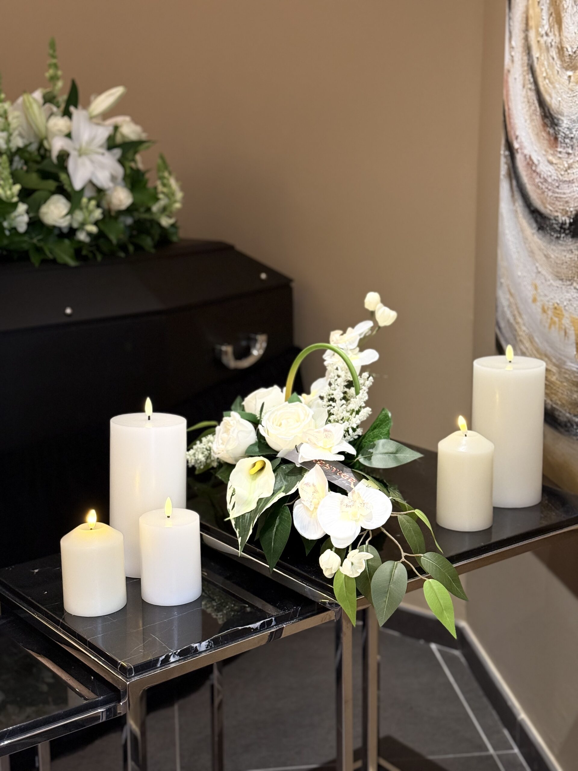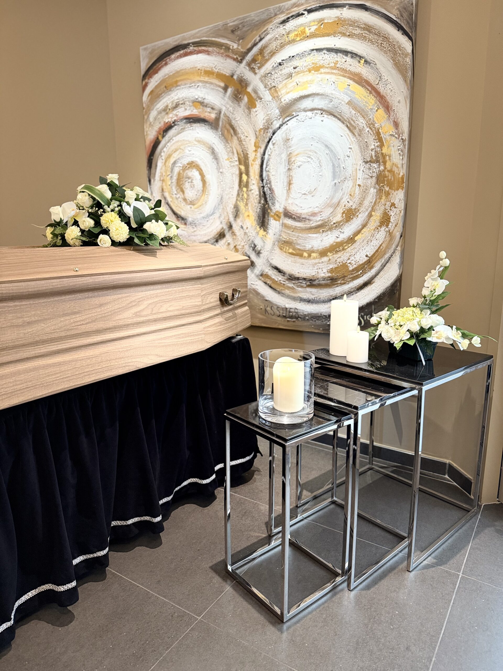 Afin de vous offrir un accueil à la hauteur de vos attentes, nous avons récemment apporté un soin particulier à la décoration de nos locaux. Vous disposez d’un cadre élégant et apaisant, propice à l’hommage et au recueillement auprès du défunt. Vous pouvez apporter des objets ou décors mobiles afin de personnaliser le salon à l’image de ce qu’appréciait votre proche.